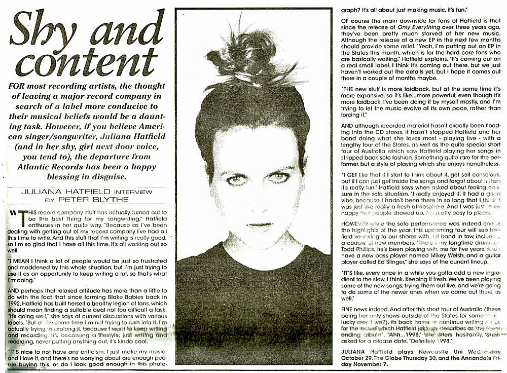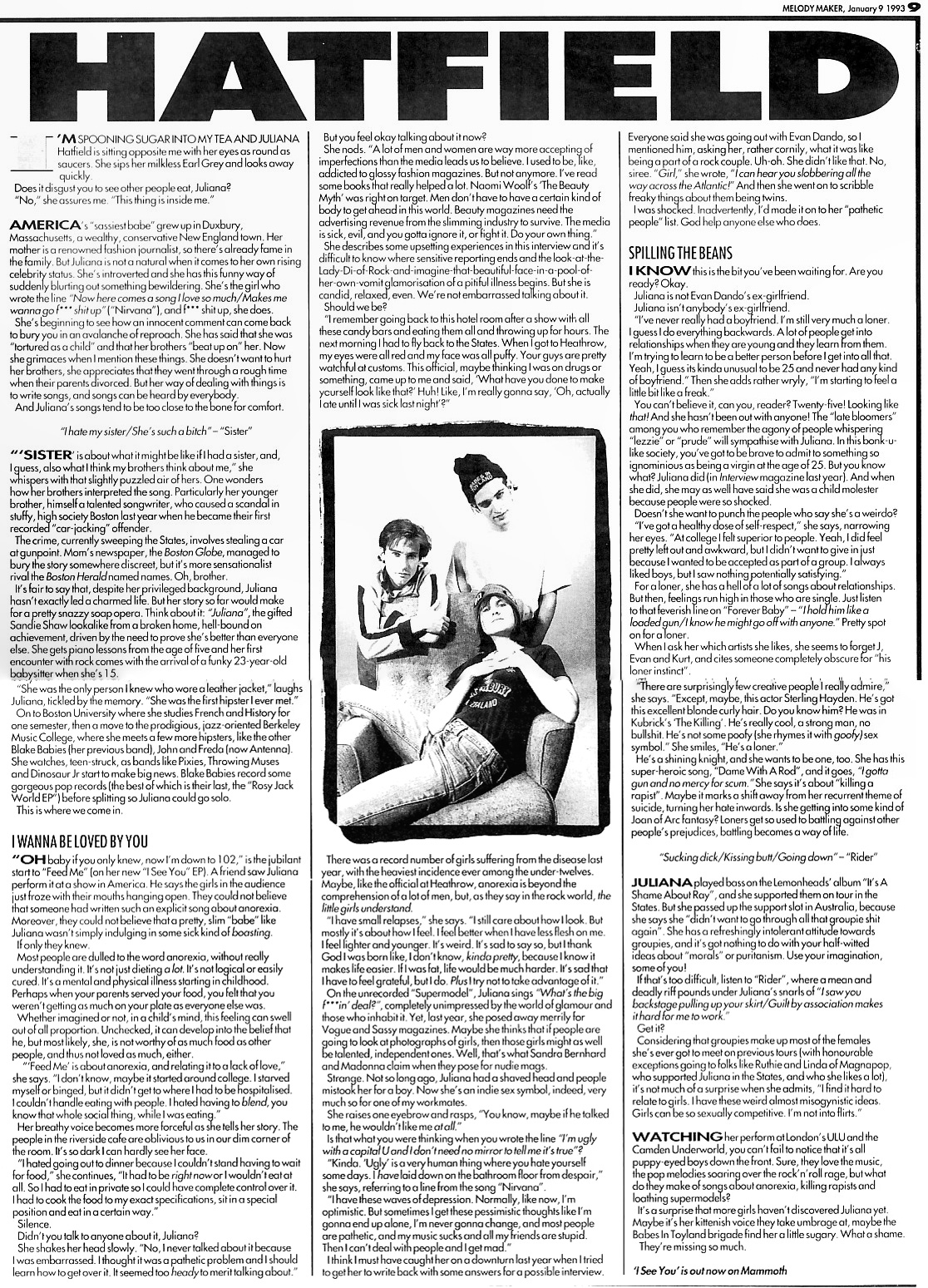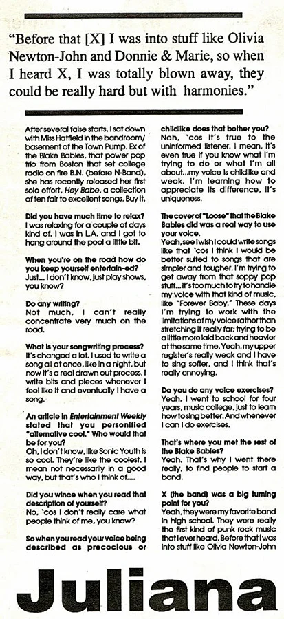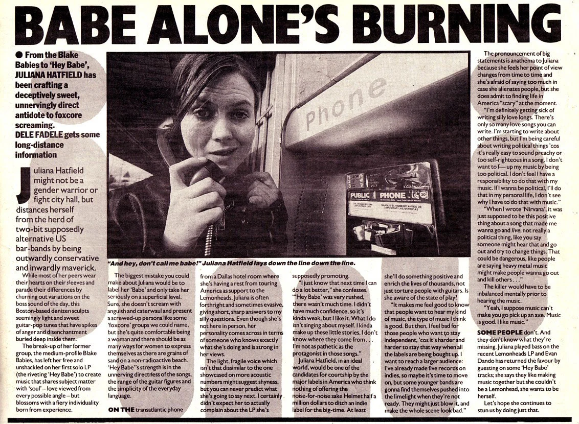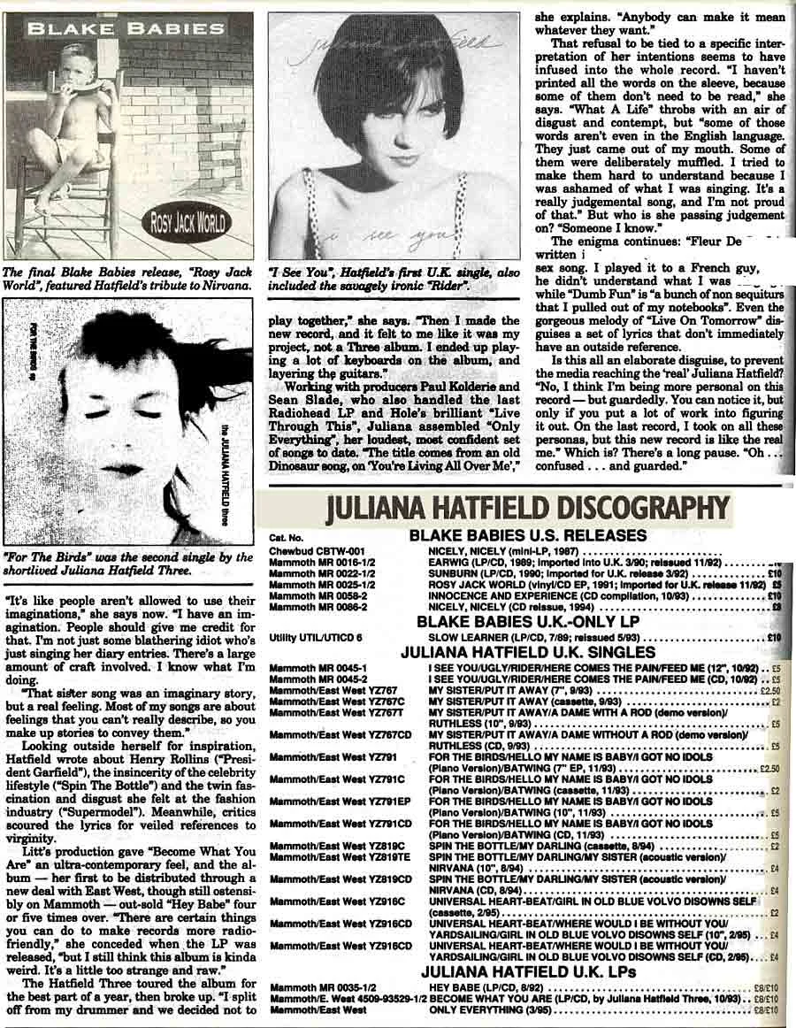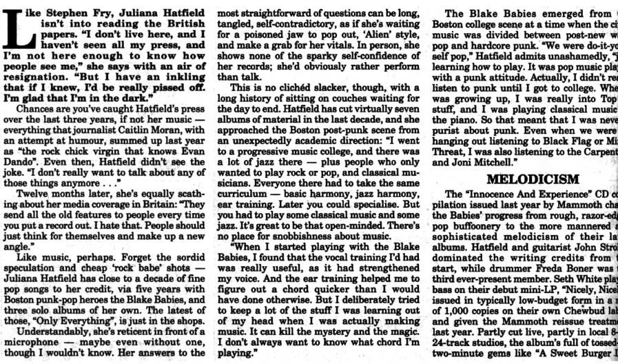 An excellent interview with the Melody Maker at the beginning of 'The Juliana Hatfield Three' - January 1993