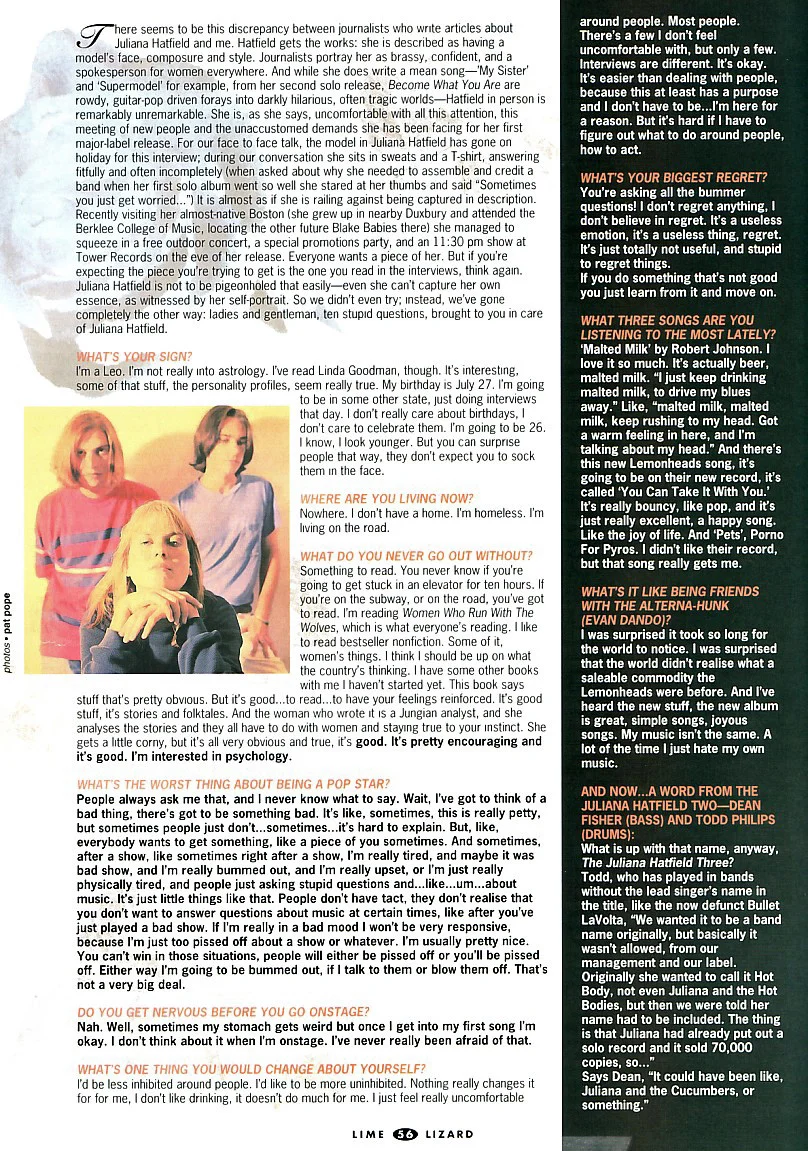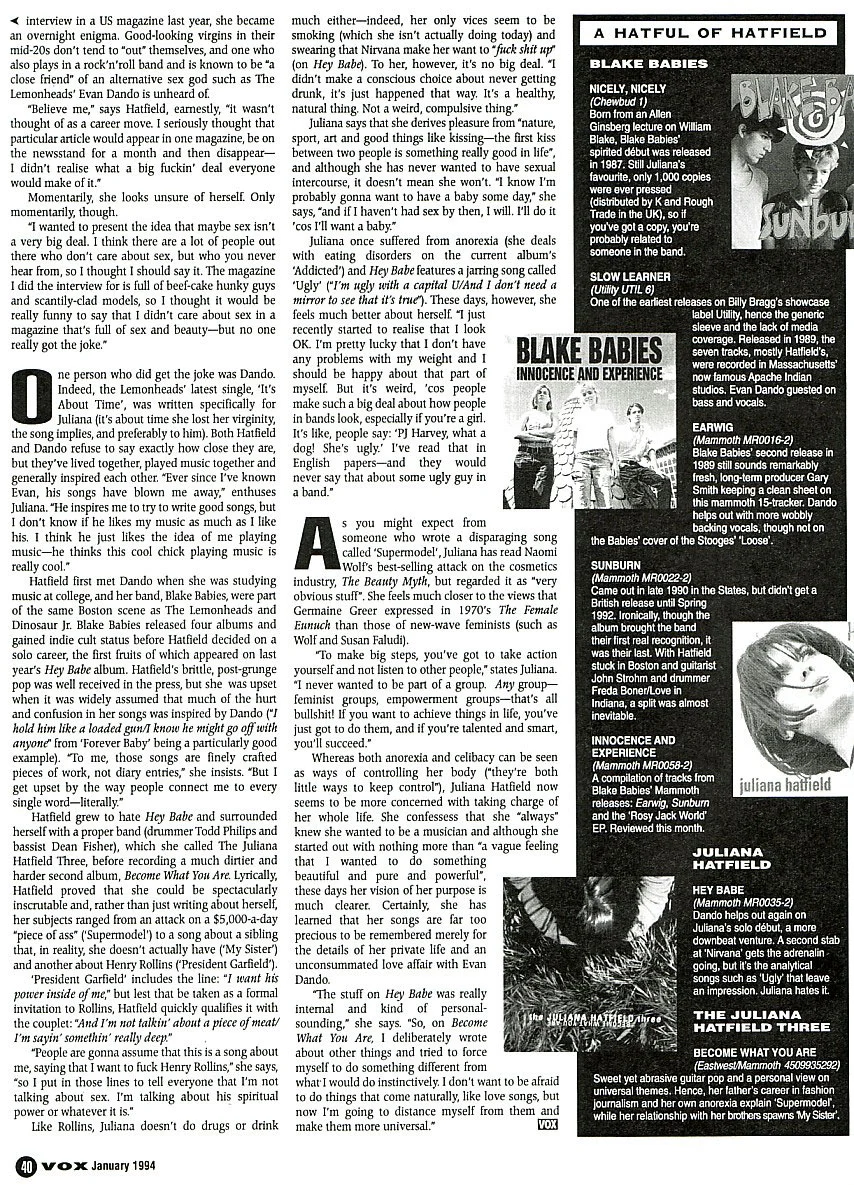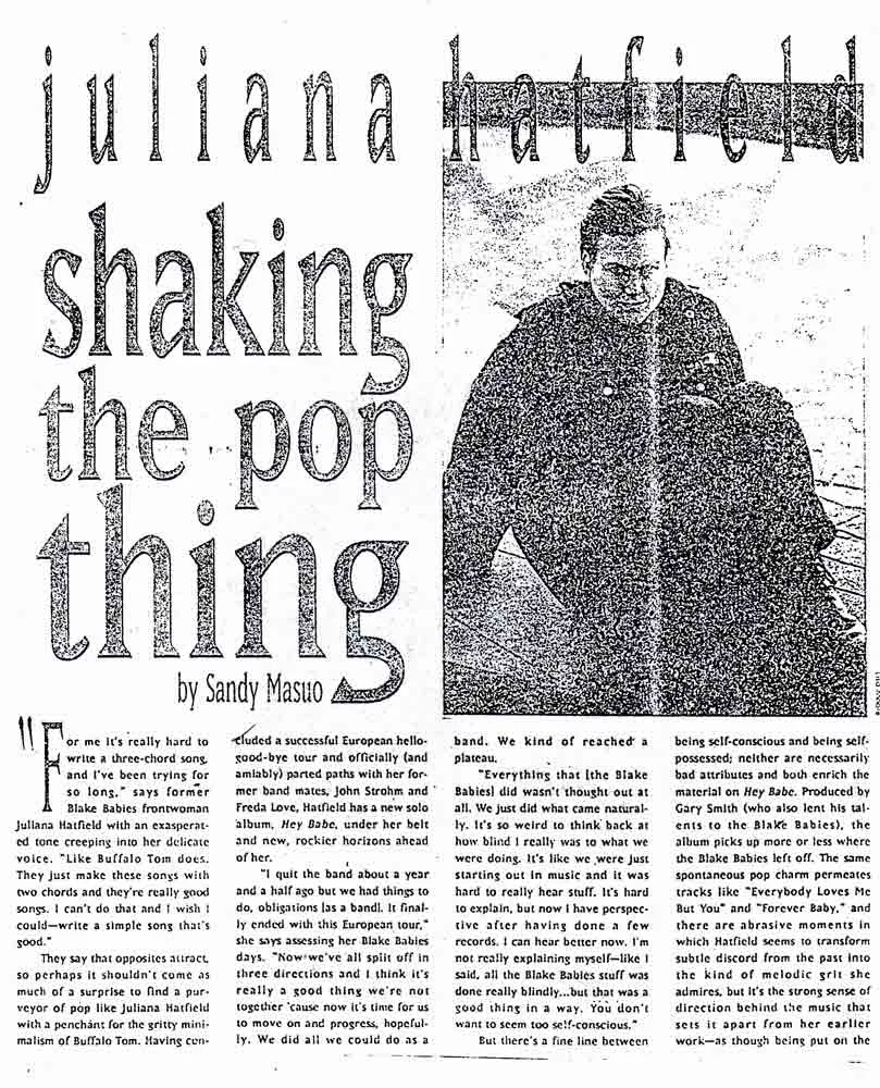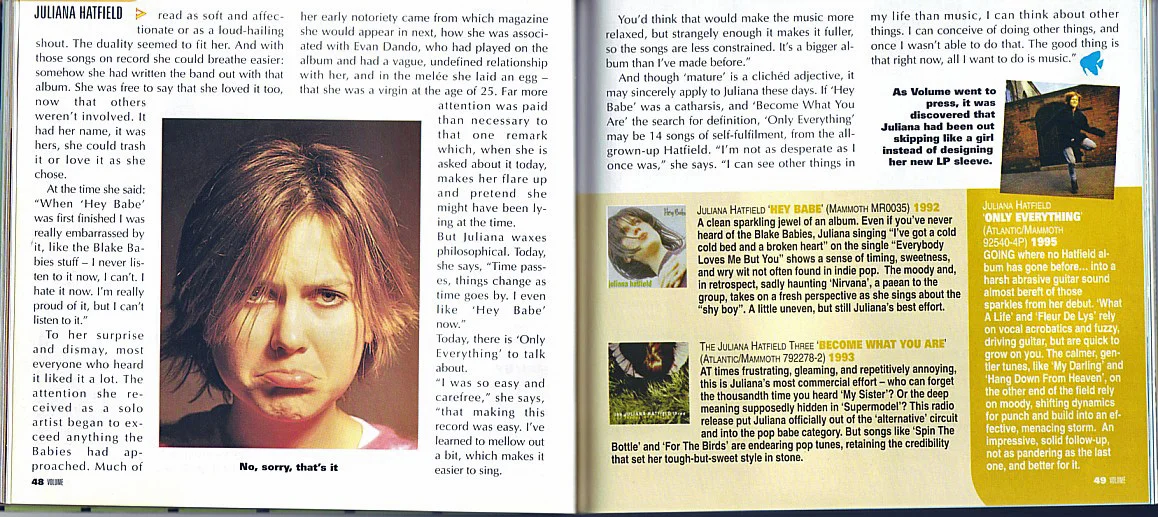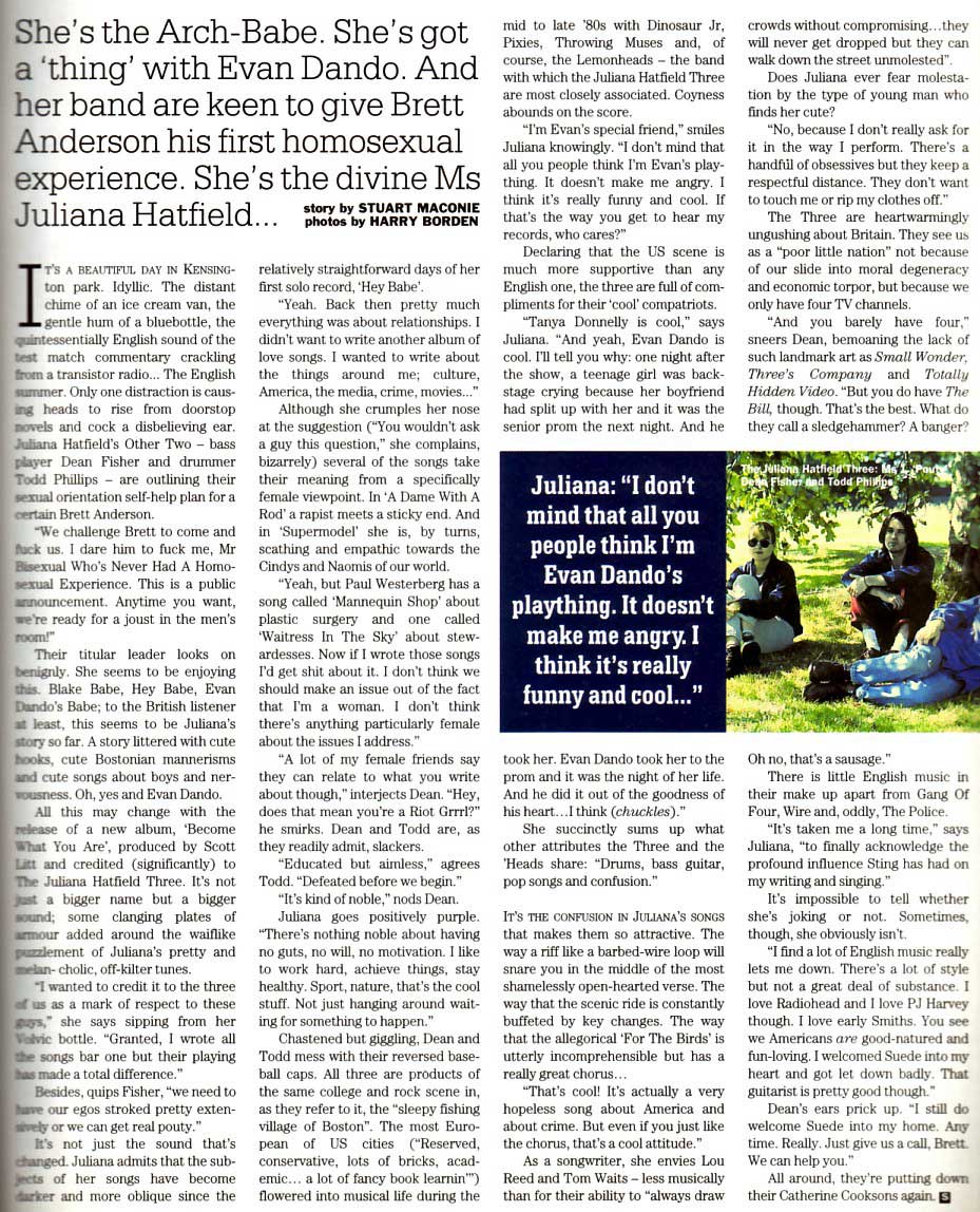 An excellent interview with the Melody Maker at the beginning of 'The Juliana Hatfield Three' - January 1993