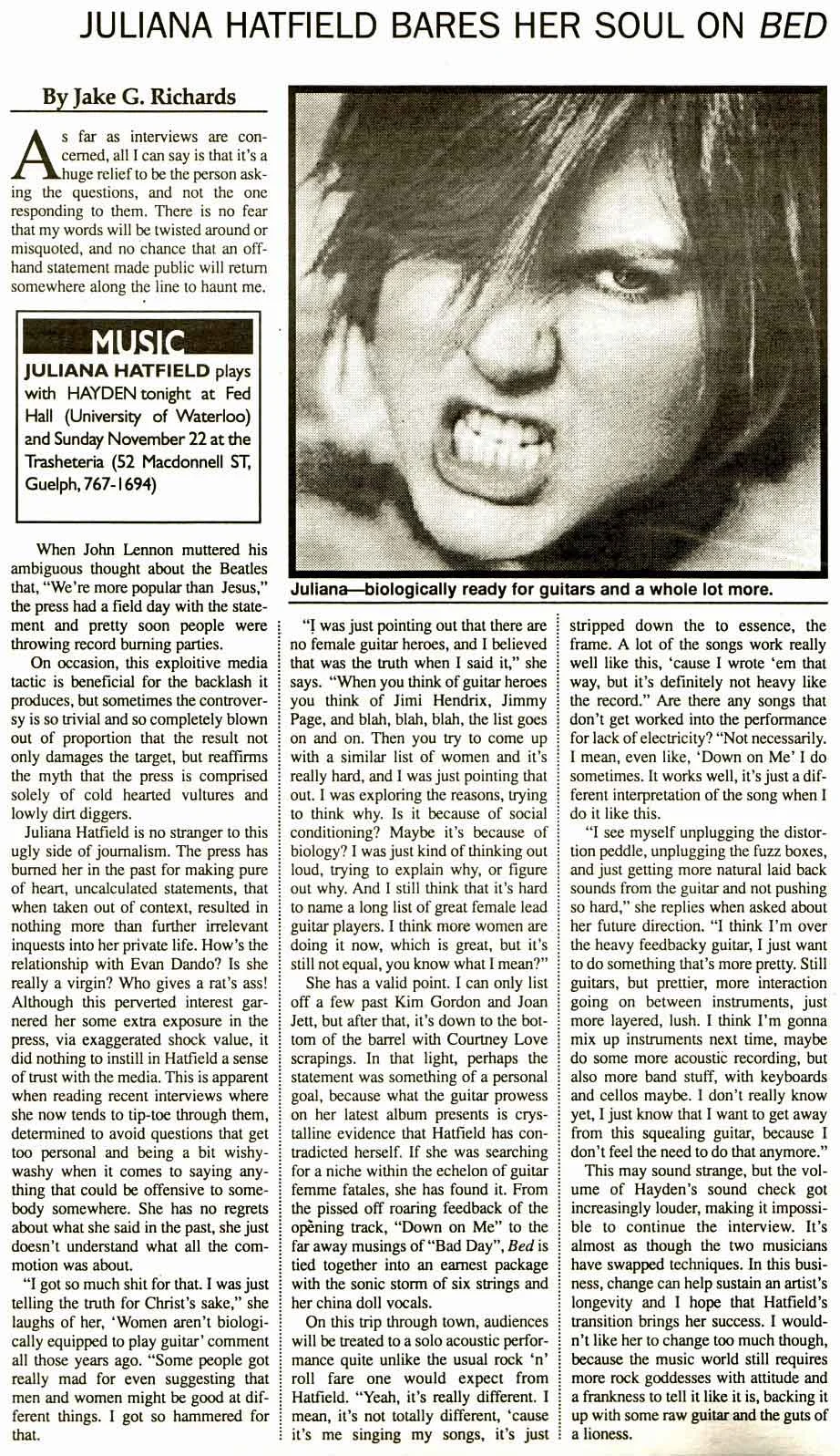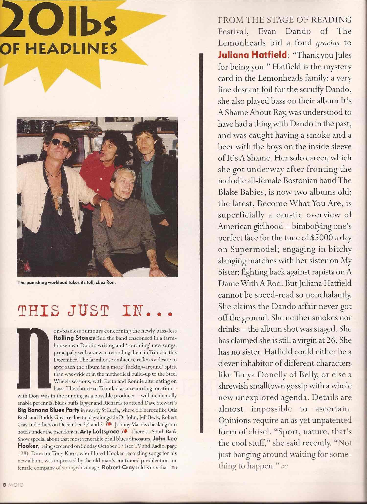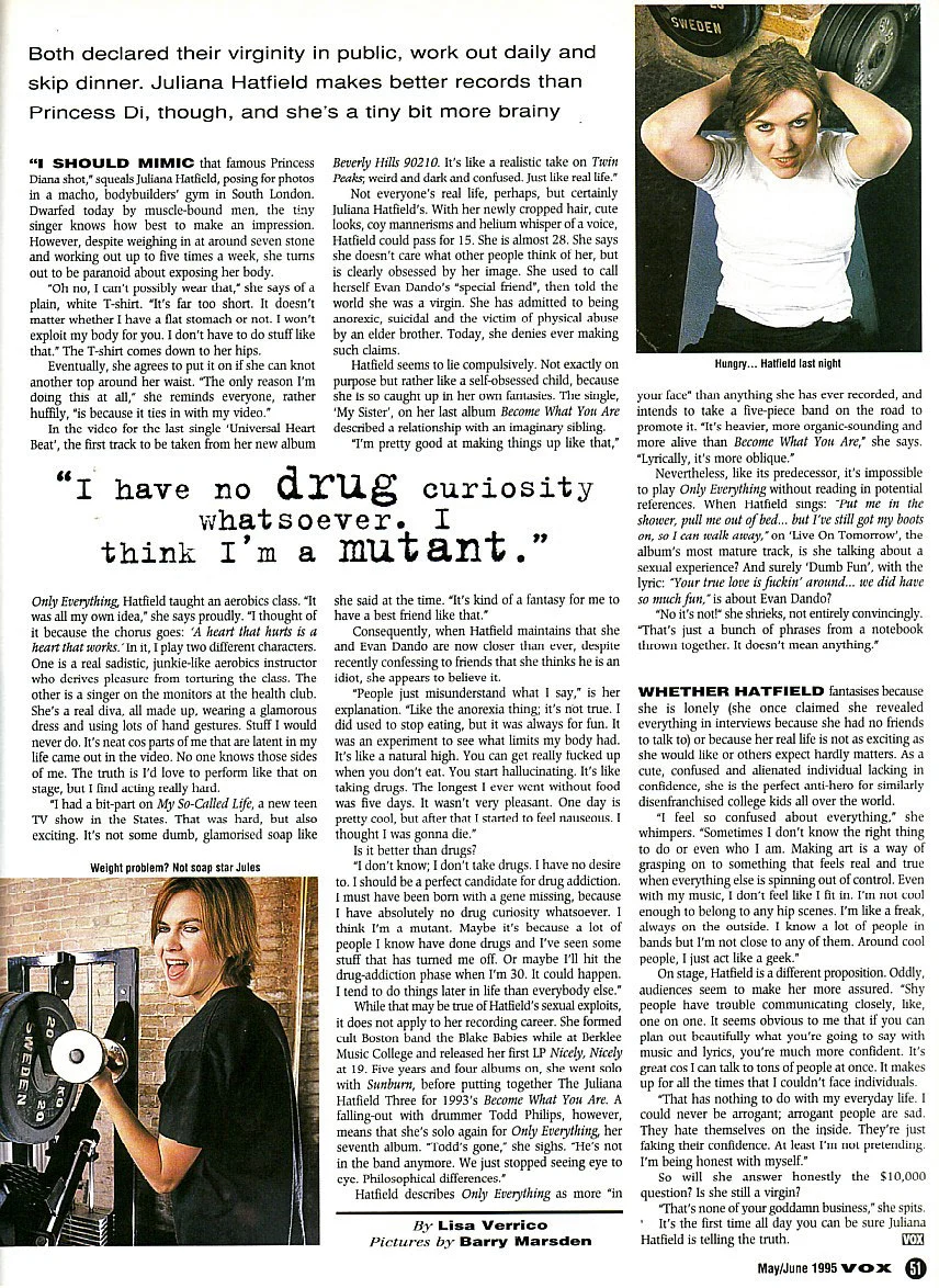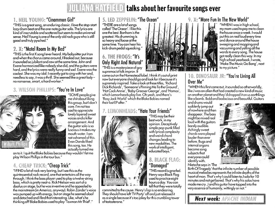 An excellent interview with the Melody Maker at the beginning of 'The Juliana Hatfield Three' - January 1993