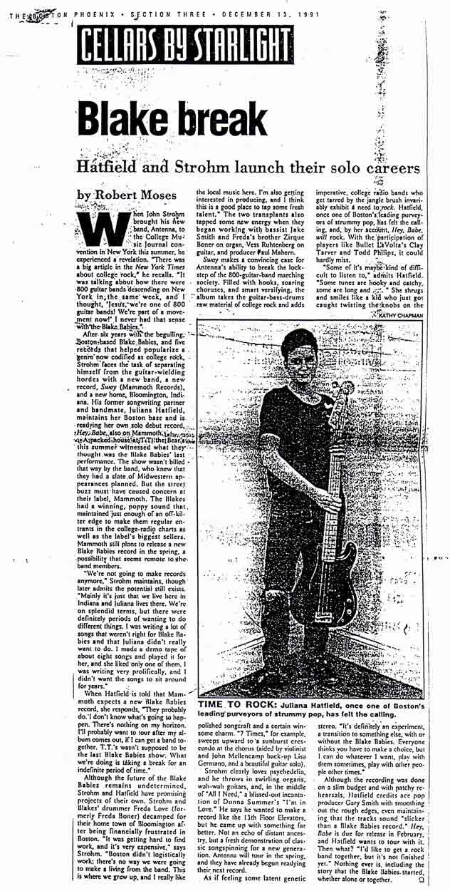 The Boston Phoenix reports the Blake Babies split - December 1991