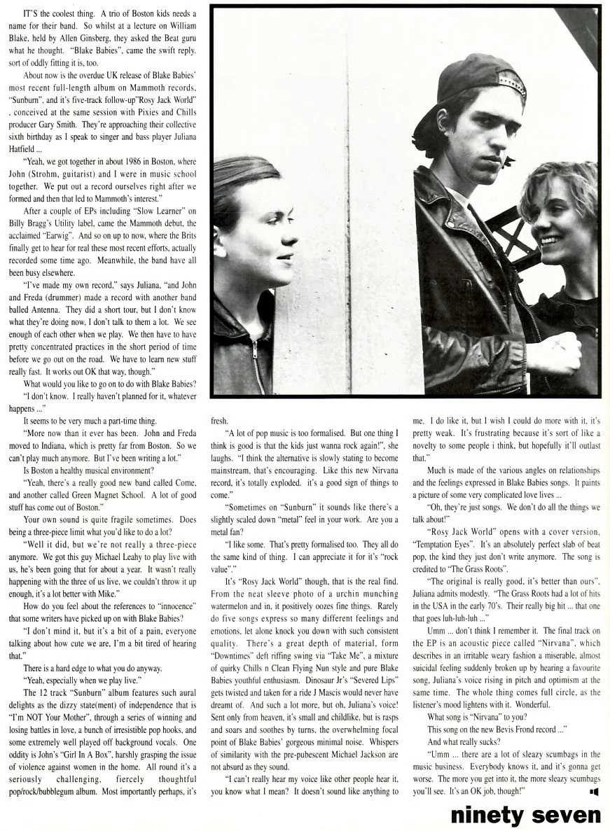 Blake Babies interviewed by English magazine Siren in 1992.