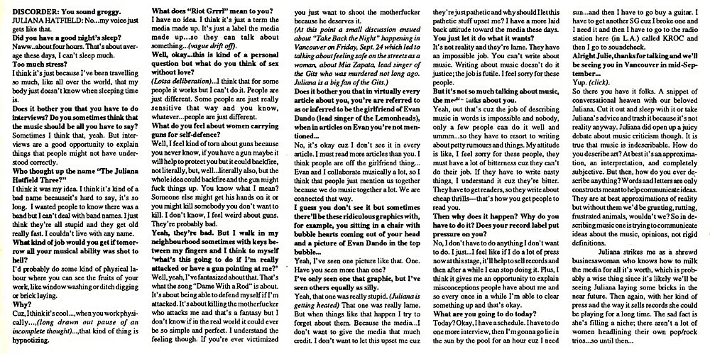 Interview with Discorder magazine from 1992.