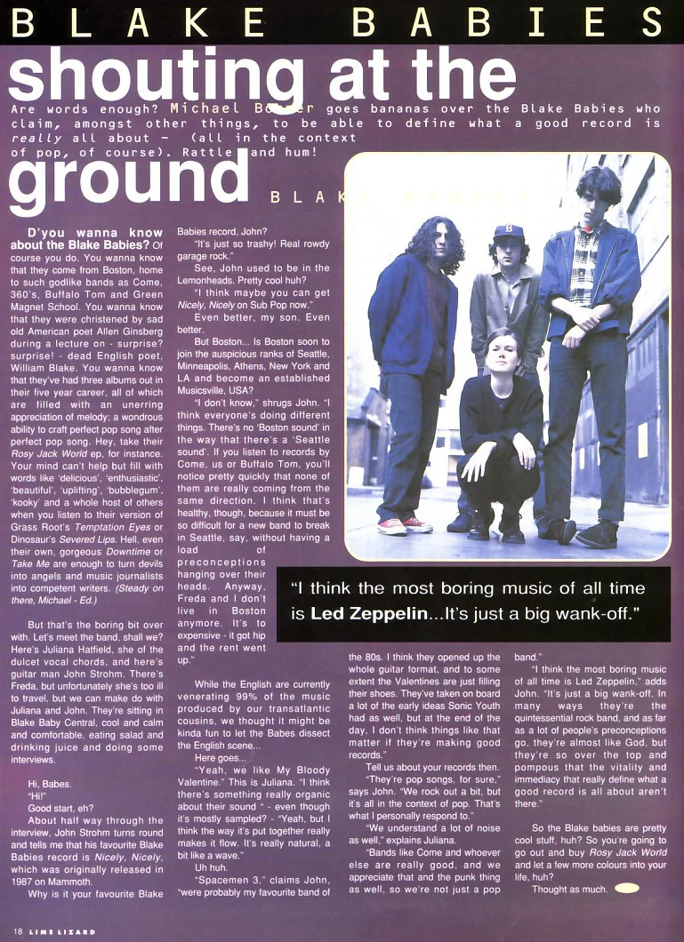 Blake Babies interviewed by English music magazine Lime Lizard in May 1992.