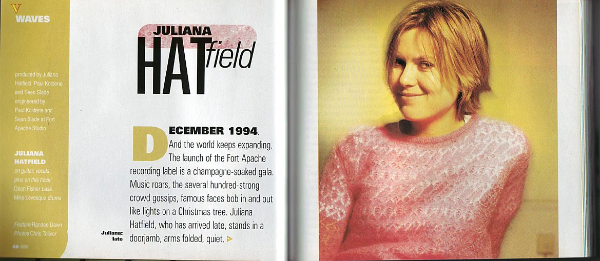 Interview from 1995. This was a Various Artists CD with a CD sized magazine featuring all the participants. Juliana contributed the song 'Waves"