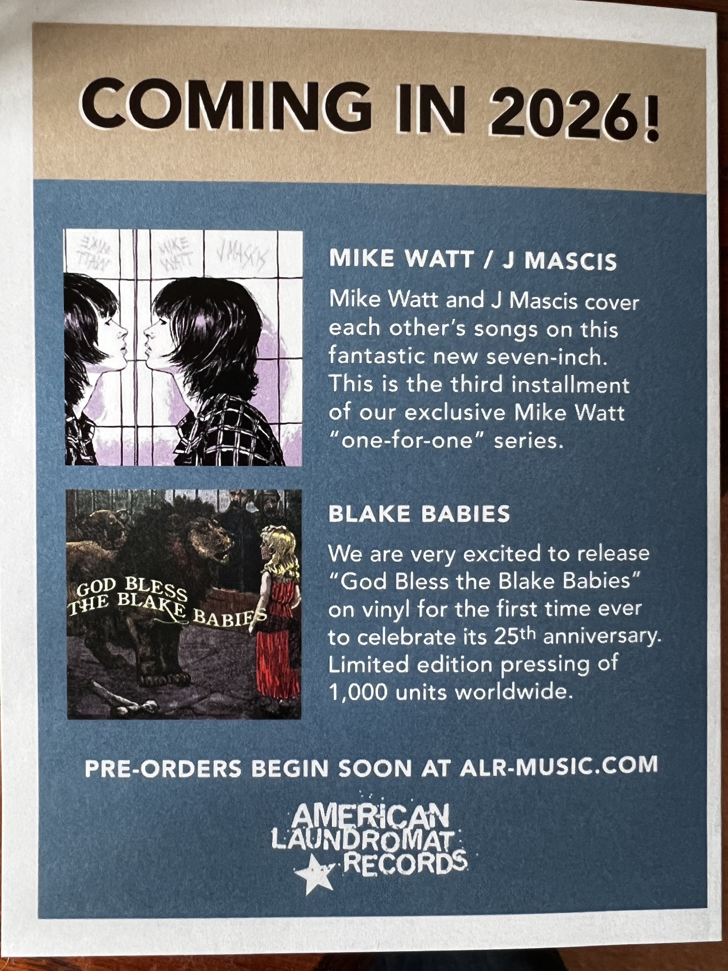 In flyers sent out with orders in late 2025 American Laundromat Records confirmed that the album is due for a vinyl issue. More details to follow.